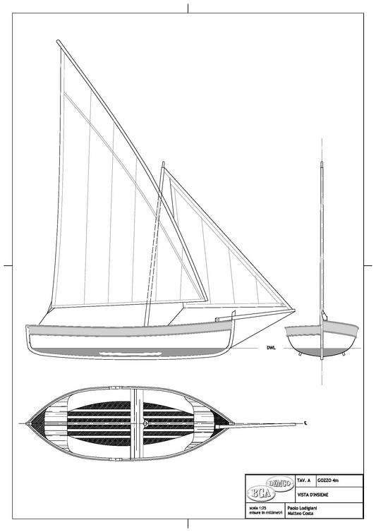 Con l'acquisto del Piano Completo si ricevono via e-mail, in formato digitale, tutti i disegni e le istruzioni necessarie per la costruzione della barca.