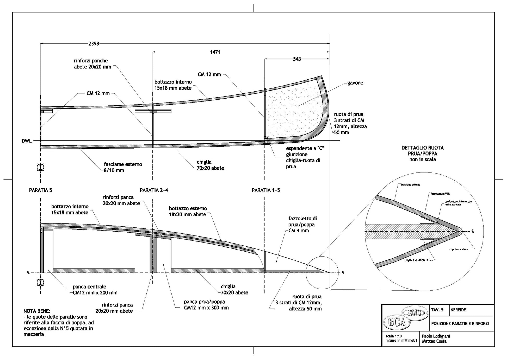 La costruzione è prevista solo in strip planking, tecnica che si adatta particolarmente a questo tipo di barca. Non è semplicissima e richiede parecchio tempo ma chi realizza una barca di questo tipo generalmente ci tiene ad avere un prodotto di alta qualità ed esteticamente valido, dedicando alla costruzione tutto il tempo necessario per riuscirci.