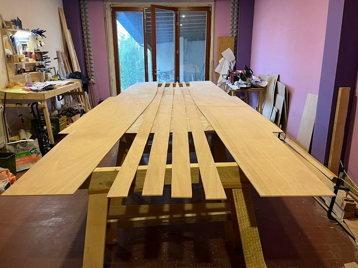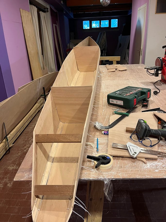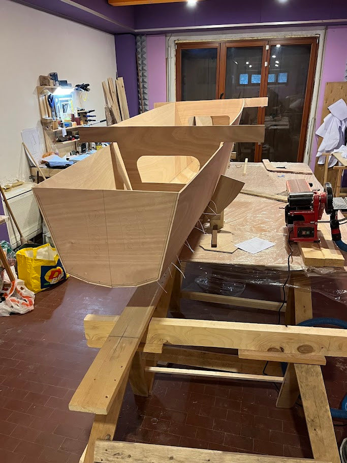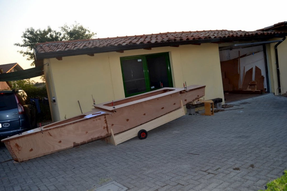 To be able to compare mass production boats and self made boats, one has to evaluate working hours, which I may reasonably set at 10 €/hr. Ct is for a self-made boat, the cost of materials + working hours X 10.