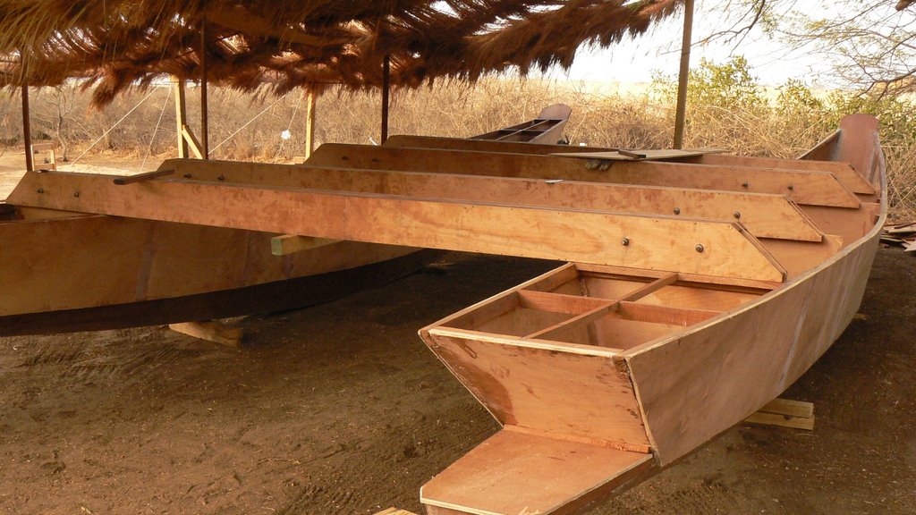 We have been totally inspired by the traditional, beautiful and extraordinarily functional Senegalese pirogues for the design of the hulls of the SIRENE DU SALOUM. The building technique is the stitch and glue, it's new to Senegal where the boats are still built with the semi-primitive and extremely cost effective systems but laking from the point of view of resistance, durability and water resistance of the hulls you'll get. Of course adopting modern systems can not solve all the problems and our first direct experience of building in Africa has been illuminating for understanding the potential development of the idea and the limits.