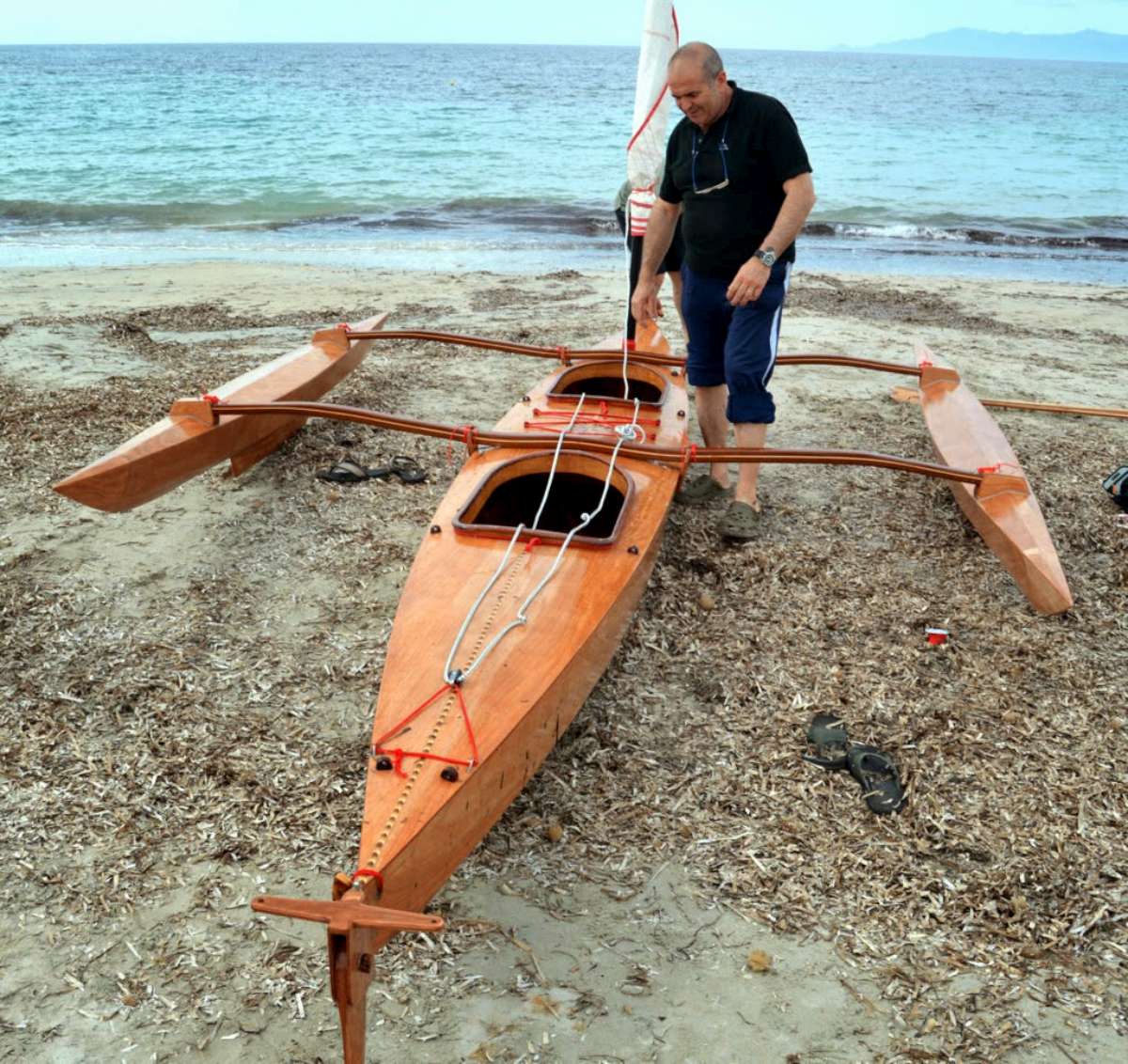 Gli scafetti laterali o galleggianti sono realizzati con il sistema del cuci e incolla con compensato marino da 4 mm e rivestiti interamente da tessuto di fibra di vetro da 200 gr/mq così da garantire leggerezza e robustezza.