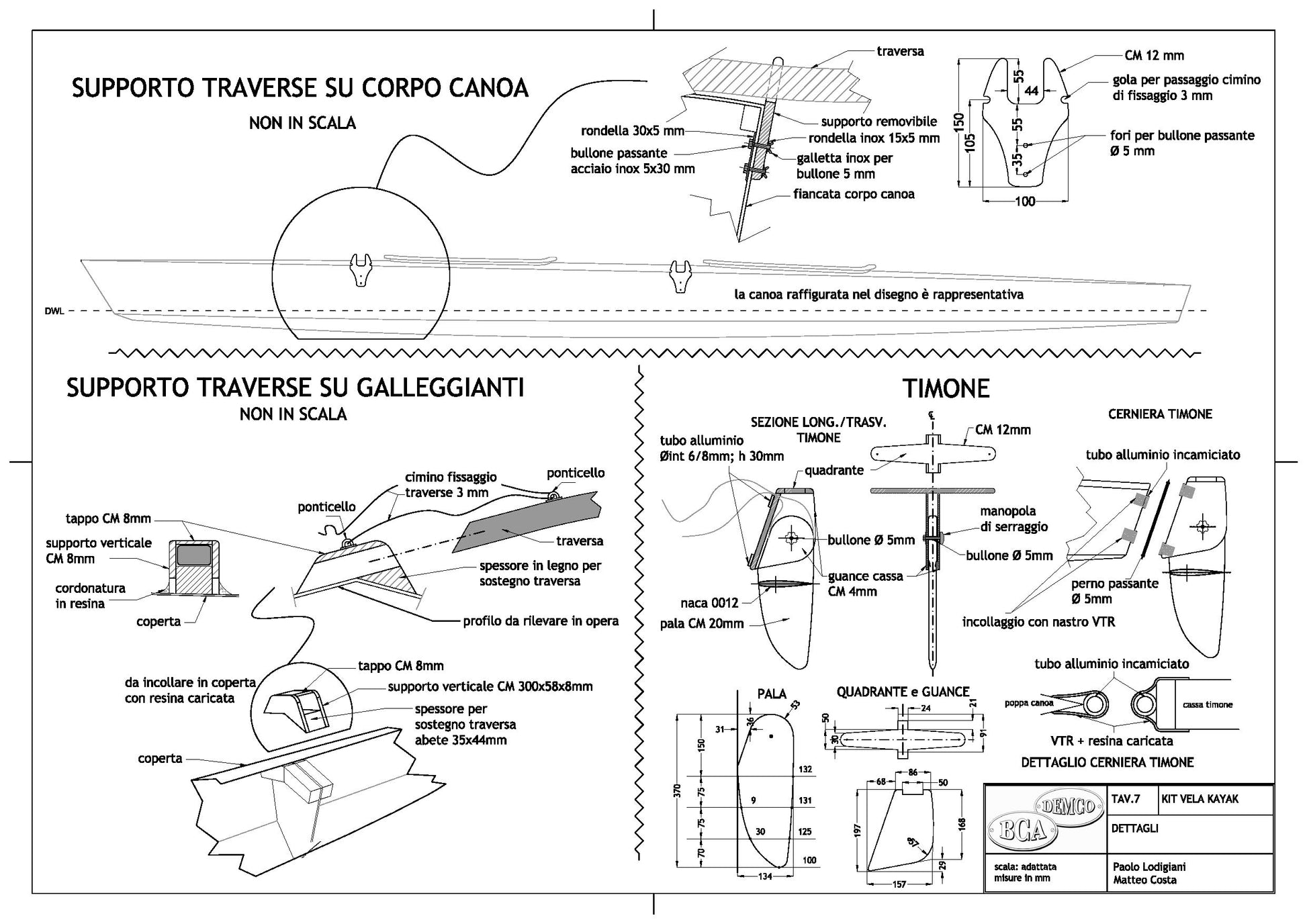 Il sistema è facilmente smontabile. Si installa sui corpi canoa con semplicità attraverso dei supporti in legno removibili. Prevede una "mastra" per l'albero che attraversa la coperta della canoa e tutto il sistema di governo è applicato esternamente allo scafo.