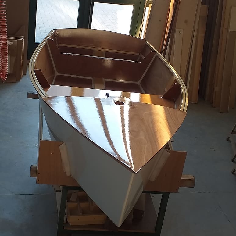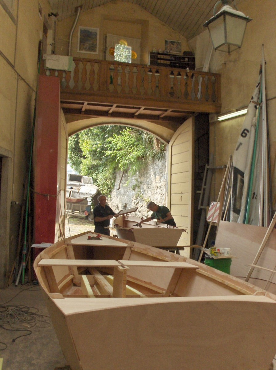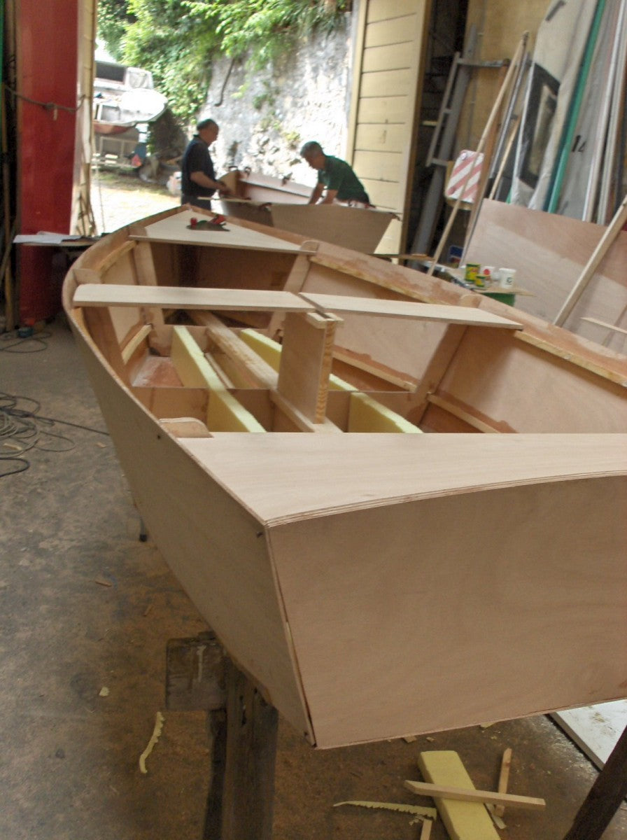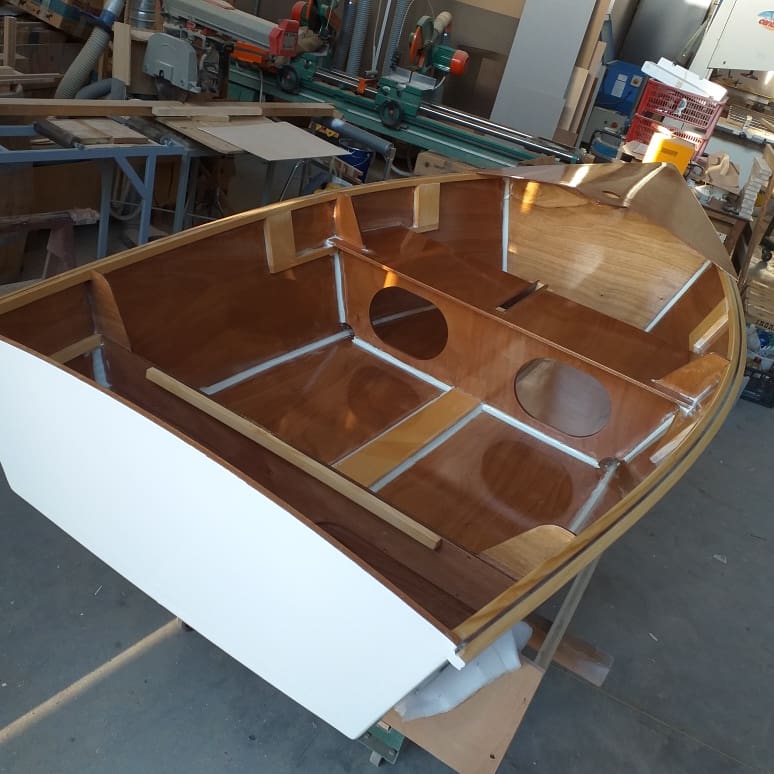 Lo SPRITZ nasce come evoluzione della nostra barca di maggior successo, il Farò, che abbiamo in produzione da quasi vent'anni e di cui nel tempo abbiamo venduto, fra piani e kit, qualche centinaio di esemplari. Il successo del Farò è dovuto al fatto che si tratta di quanto di più semplice ed economico si possa immaginare di fare con compensato marino e resina epossidica. Con lo Spritz abbiamo apportato qualche variante che complica leggermente le cose ma che ci sembra migliori il progetto. Le linee sono rimaste sostanzialmente le stesse tranne una leggera riduzione della larghezza alla linea di galleggiamento, che lo rende leggermente meno stabile del Farò, altrettanto leggermente più performante e più adatto a essere portato a remi. L'innovazione principale è l'introduzione di un doppio fondo, che rende la barca autosvuotante, facilitando il raddrizzamento in caso di rovesciamento, che era il punto debole del Farò. Inevitabilmente la costruzione è un po' più lunga e non possiamo più pubblicizzarlo, usando lo slogan coniate per il Farò, come la barca che si costruisce in un week-end. Ce ne vogliono almeno due (per un bravo costruttore che lavora con impegno), che comunque non sono molti.