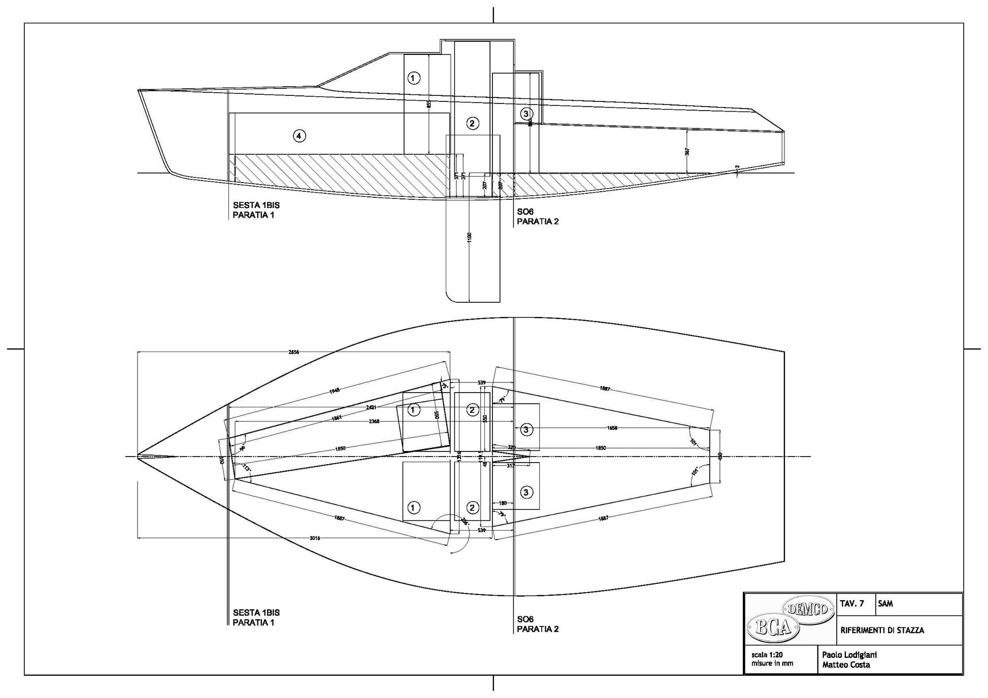 Il SAM è stato realizzato nel secondo anno della nostra partecipazione alle manifestazioni della classe, ciò che ci ha permesso, sfruttando l'esperienza acquisita, di concepire una barca in grado di lottare ad armi pari con le migliori della classe. Con venti leggeri è risultata velocissima ed anche con venti medio-forti rimane pienamente competitiva. Per realizzare una barca che abbia potenzialità di vittoria anche il sistema costruttivo deve essere abbastanza sofisticato: il limite minimo di peso imposto dalla stazza fa sì che l’impiego di materiali ad alta tecnologia, quali carbonio e kevlar, non sia strettamente necessario, ma la costruzione deve essere imperativamente in sandwich di vetroresina, possibilmente laminato sottovuoto. Non è un sistema molto adatto all'autocostruzione: in alternativa si può ripiegare sul sistema in strip planking, leggermente più pesante ma più adatto ad una lavorazione non professionale, se non altro dal punto di vista della piacevolezza. E’ da notare che anche con la costruzione in strip planking è facile tenersi entro il peso minimo previsto dalla stazza: la differenza è che con il sandwich, essendo lo scafo più leggero, si può aumentare la zavorra disponendo il peso dove più conviene, mentre con lo strip planking la zavorra è inevitabilmente inferiore.