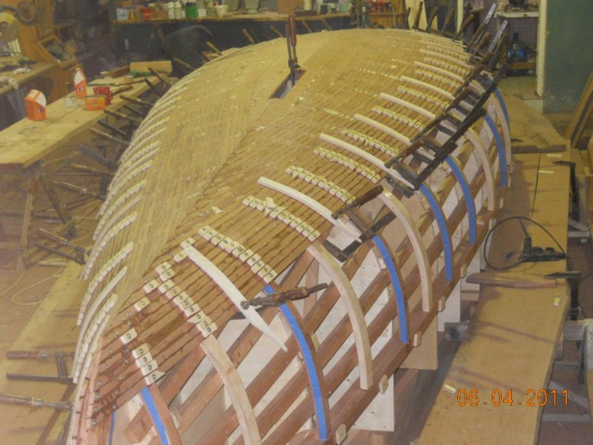 Carena tonda, costruzione in strip planking