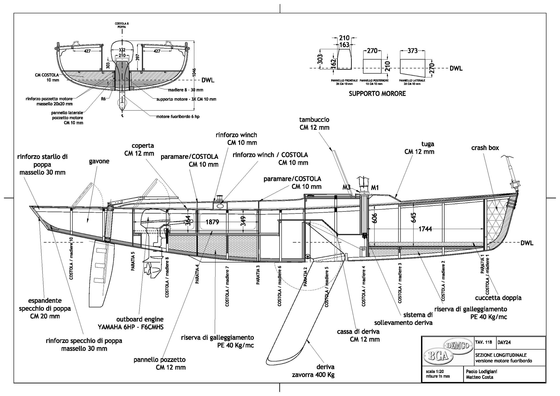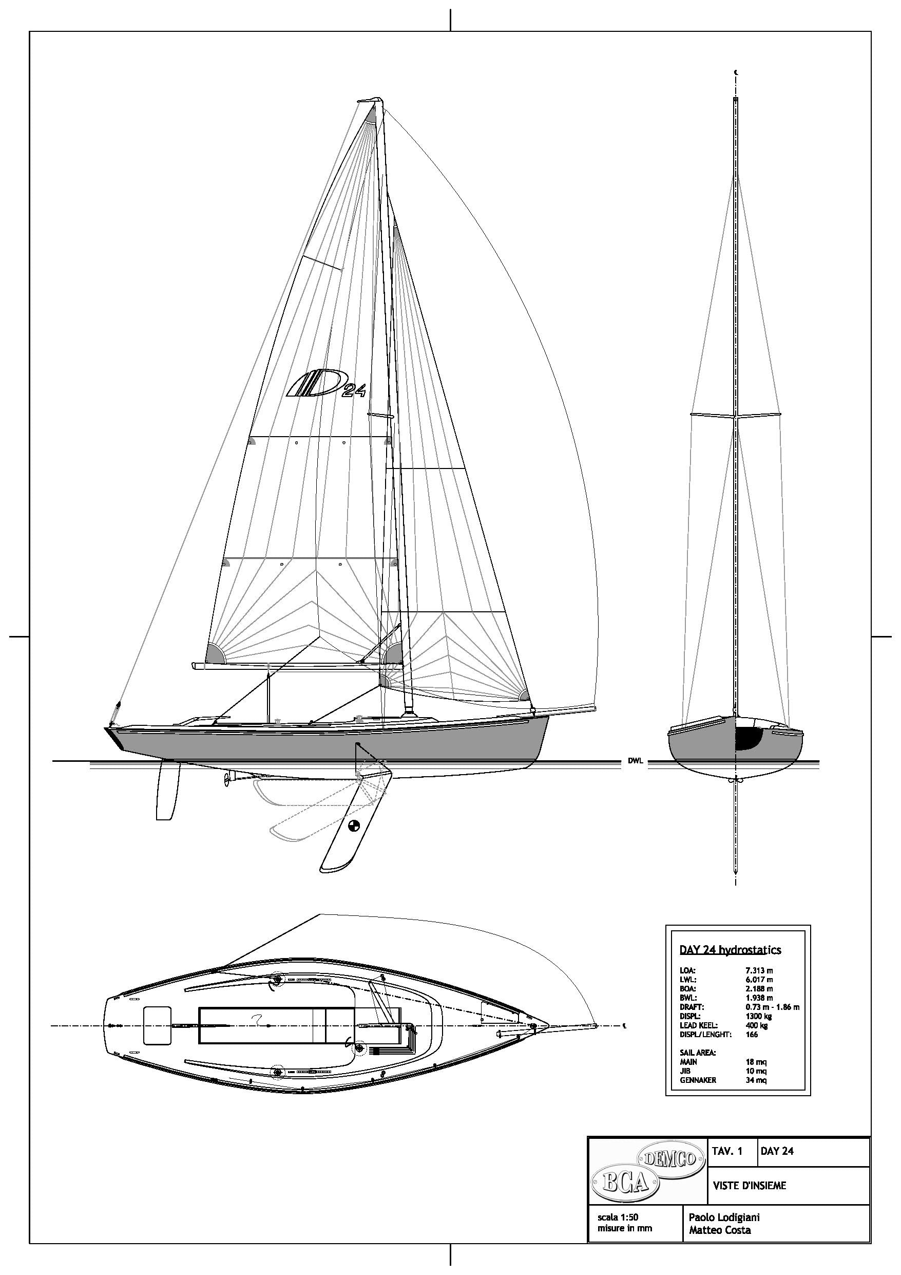 Se ci dobbiamo basare sulle richieste del mercato fino al 2008 i due dayboat che proponiamo (DAYSAILER 24 e DAYSAILER 30) sono decisamente piccoli. In quel periodo, caratterizzato in generale da un continuo aumento delle dimensioni delle imbarcazioni richieste dal mercato, sembrava che un dayboat non potesse essere inferiore a 12 m, meglio ancora se superava i 15 m, per non parlare delle barche da 30 m che, pur non potendosi definire come dayboat, venivano abitualmente usate dai loro armatori come tali, per audaci navigazioni fra Porto Cervo e Budelli o fra Portofino e Santa Margherita. E' difficile dire quali saranno le tendenze del mercato dopo la grande crisi e non ci azzardiamo a fare previsioni onde evitarle di vederle smentite. Nel disegnare le nostre dayboat non siamo partiti da ipotesi di mercato ma da considerazioni elementari di logica.