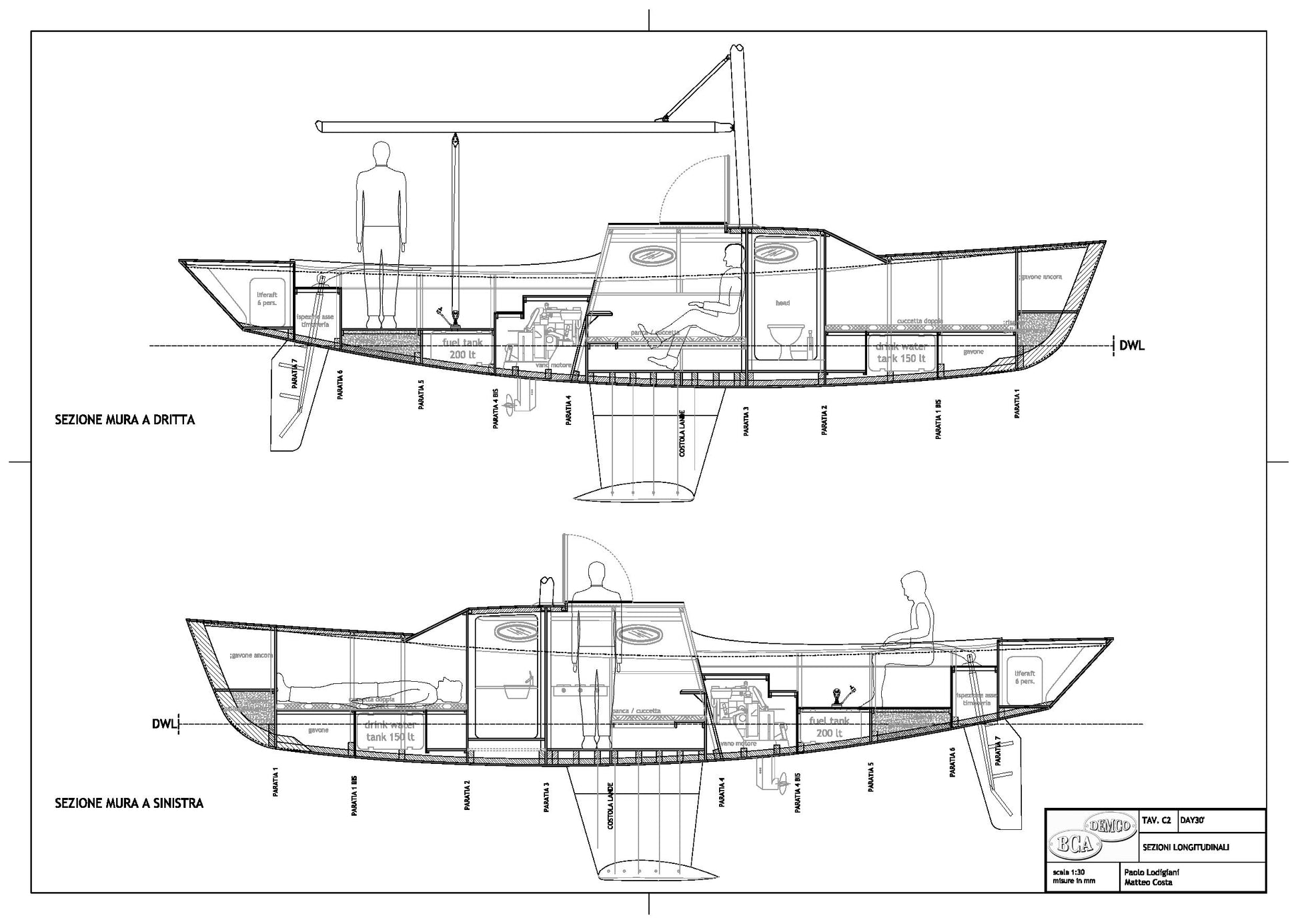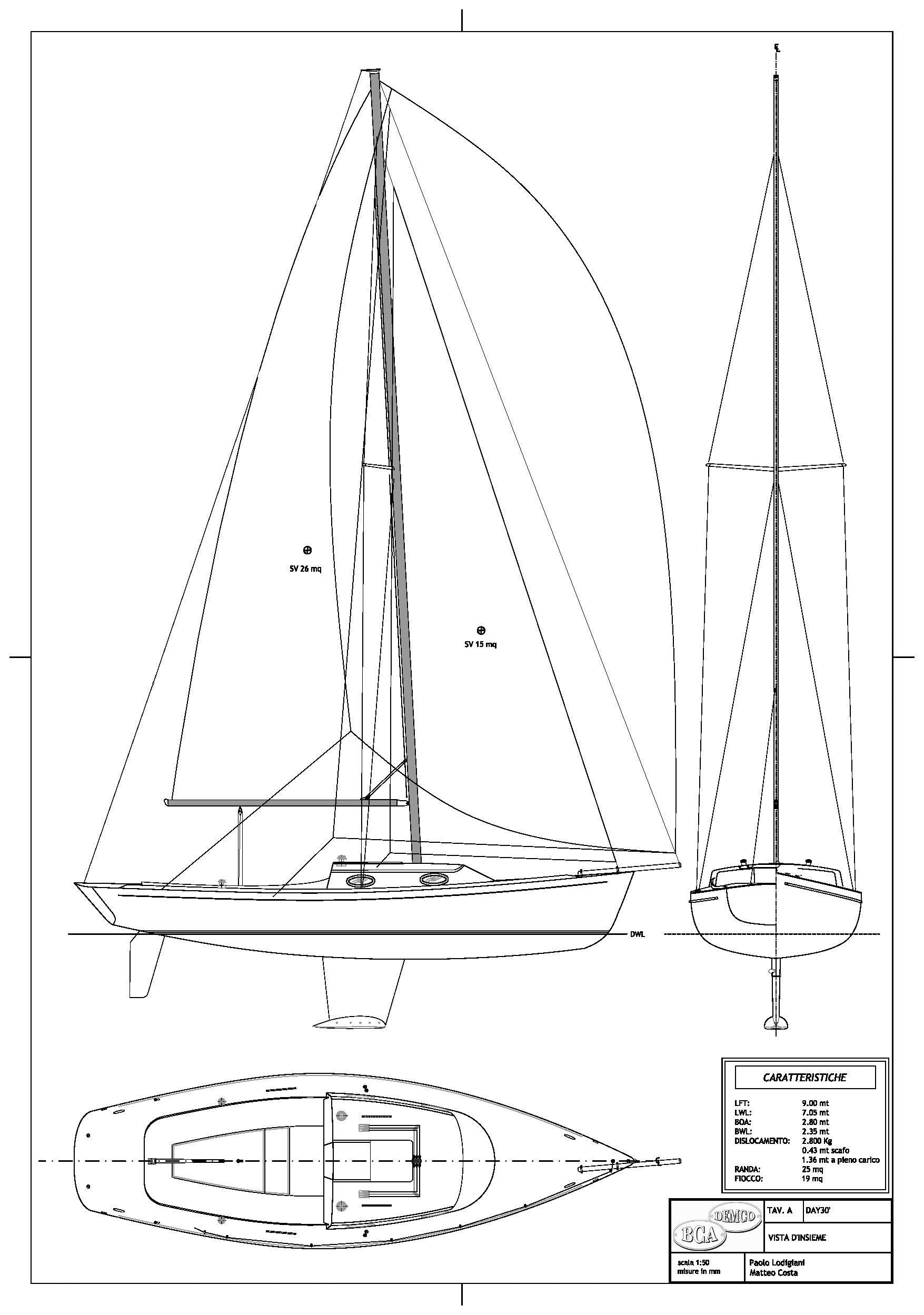 A noi sembra che un dayboat, visto l'uso a cui è destinato, debba essere inferiore ai 10 m. Non è necessario che abbia grande capienza, non dovrebbe nemmeno trovarsi ad affrontare condizioni meteo difficili. E' invece essenziale che sia pratica, maneggevole e facile da usare, che non richieda all'equipaggio grandi sforzi fisici, che possa approdare anche in piccoli porti nelle sue gite giornaliere. Una dimensione contenuta ci sembra offrire solo vantaggi. E' vero che oggi si dice che grazie ai vari marchingegni (eliche di prua, verricelli elettrici, ecc) anche grandi barche si portano senza sforzi ma a noi sembra che questo ragionamento inneschi una spirale perversa per cui più marchingegni si mettono più aumentano le dimensioni della barca, che, essendo più grande, richiede altri marchingegni e così via all'infinito. Noi abbiamo puntato su dimensioni contenute e sulla semplicità, ciò che significa anche ridurre i costi.